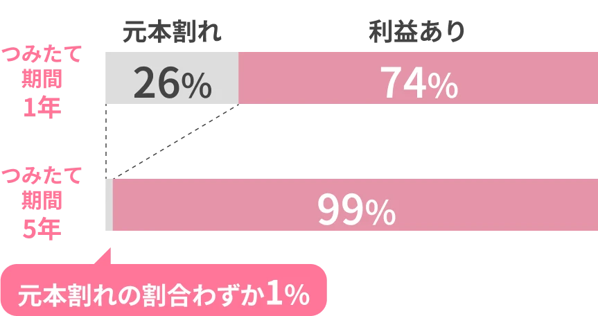 決まった期間はございませんが、一般的にはつみたて投資はつみたて期間が長いほどリスクを